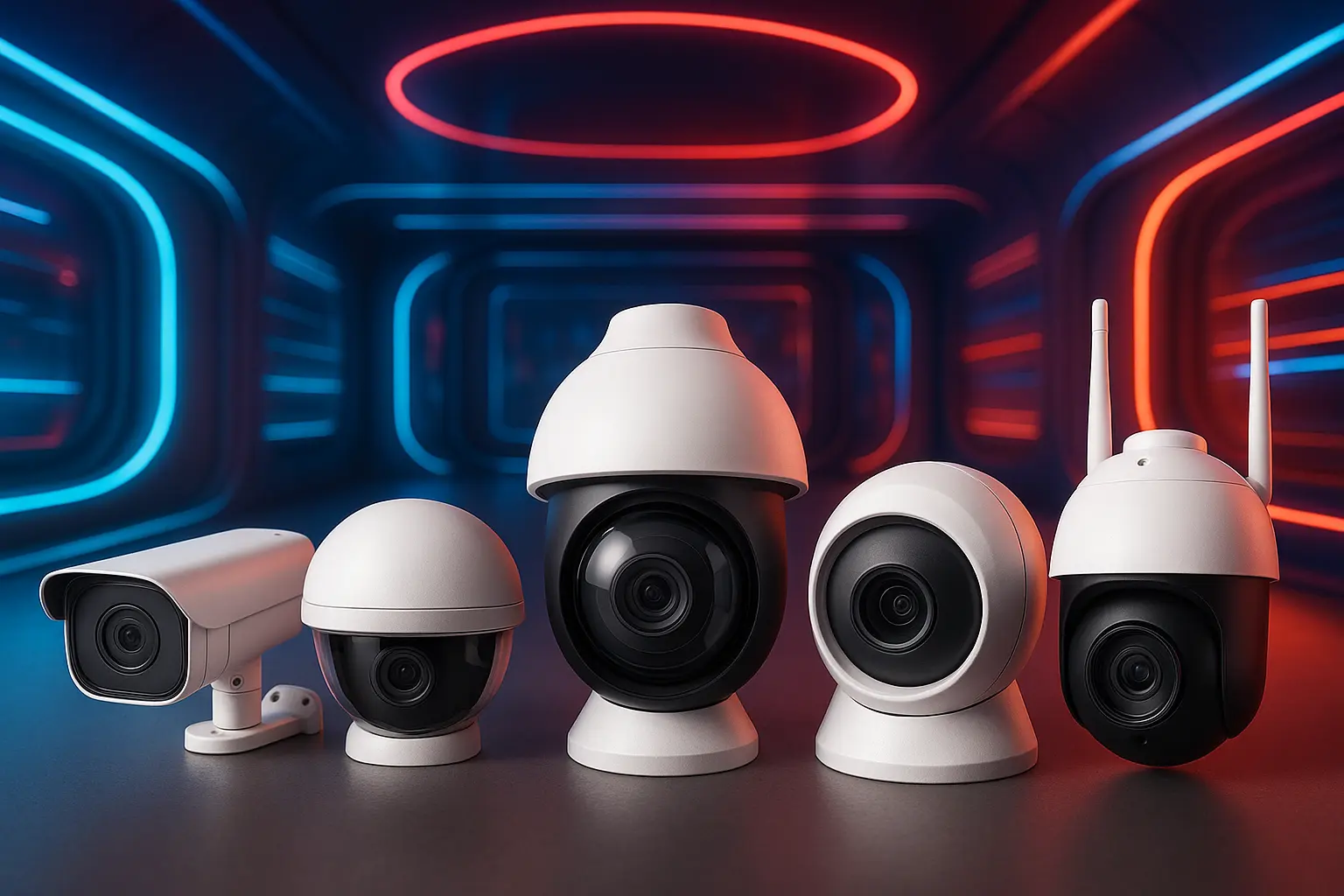 Os cinco principais modelos incluem câmeras dome, câmeras bullet, câmeras PTZ, câmeras de segurança sem fio e câmeras de segurança com fio.