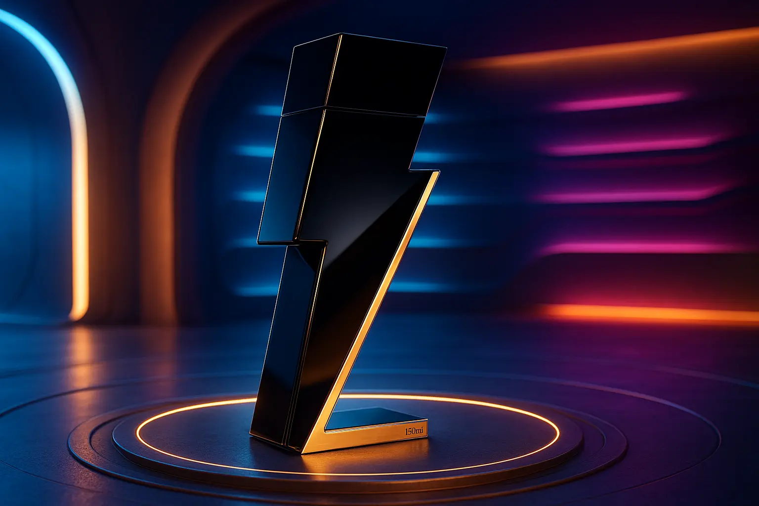 - Design: Frasco preto com acabamento metálico em formato de raio — moderno, imponente e colecionável